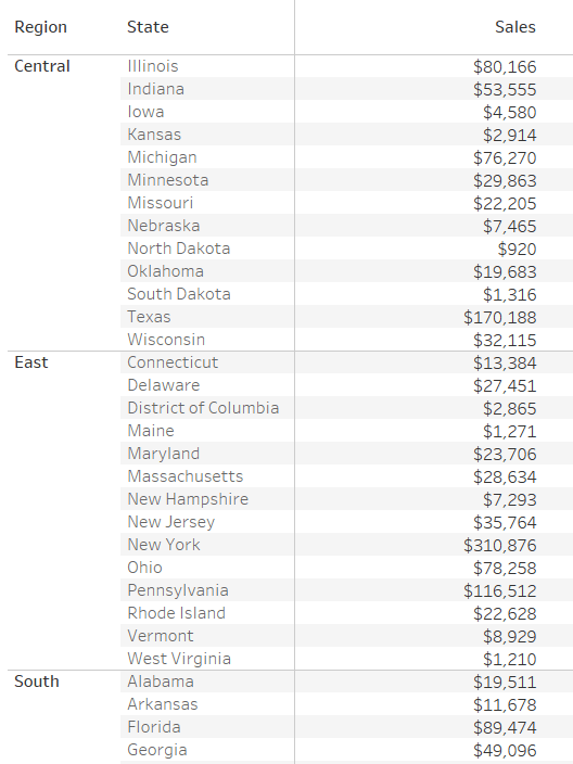 Current view: To achieve the required result the first step is to calculate “Sales” across States.